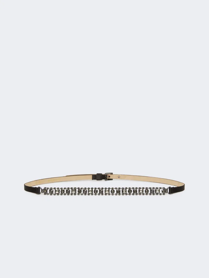jewel belt with ornate detail on the front composed of glass elements.