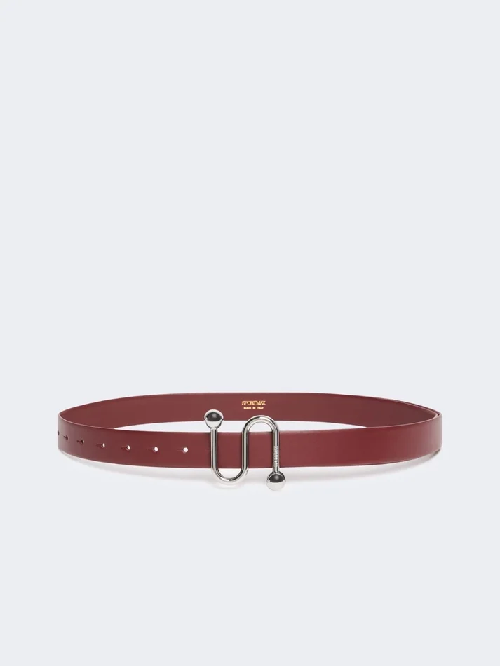 smooth, lightly padded calfskin belt with seven-hole construction, to be worn at the waist or hips. s-shaped metallic buckle.