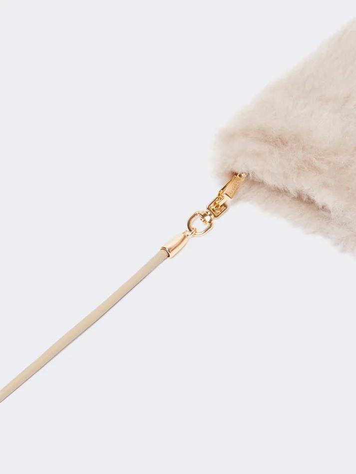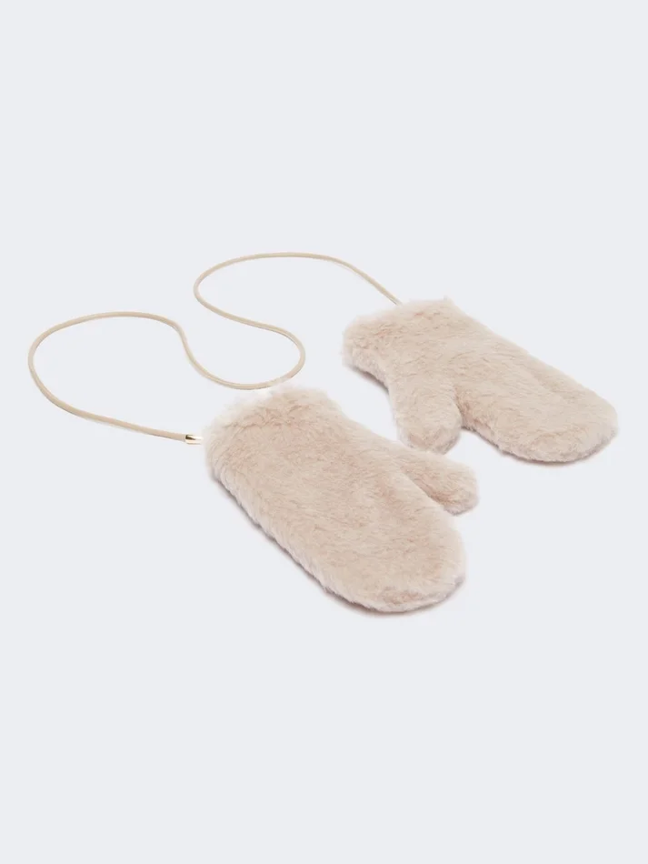 - mittens in alpaca and wool teddy fabric, set on a silk base