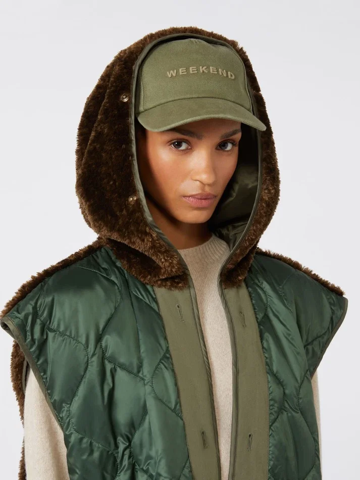 baseball cap with semi-rigid visor customised with embossed weekend lettering on the front.