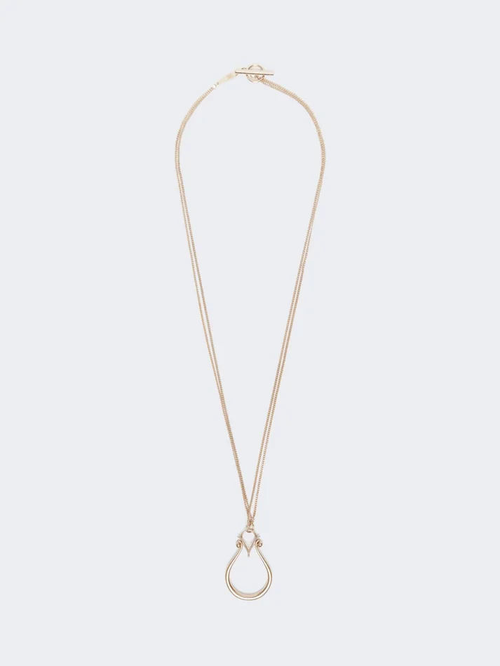long necklace with fine double chain and pendant that recalls the iconic m monogram logo.