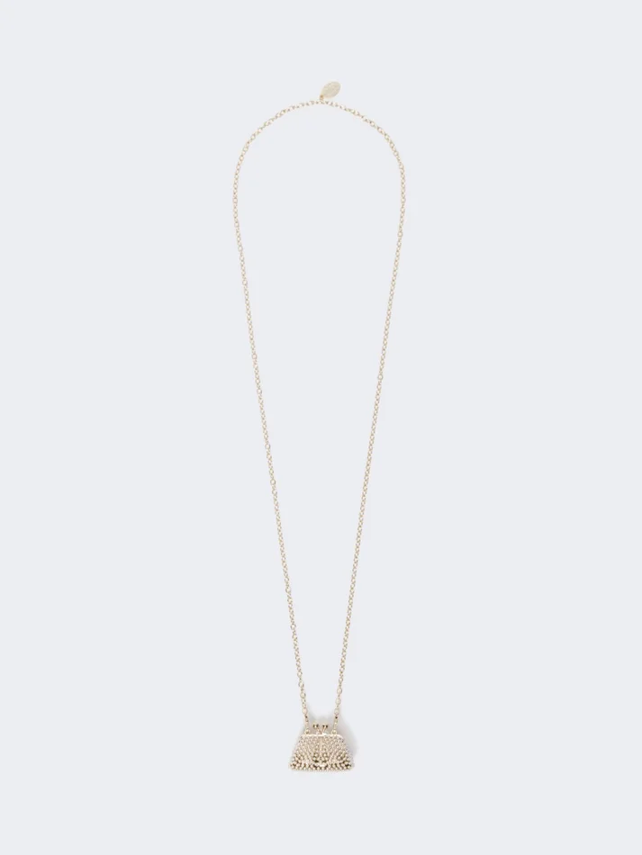 chain necklace featuring a pasticcino bag-shaped pendant, complete with embedded micro pearl detail.
