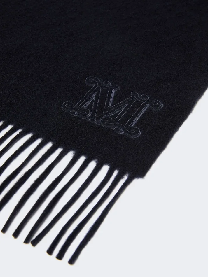 this rectangular stole is embellished with elegant embroidered m monogram detail at the hem.