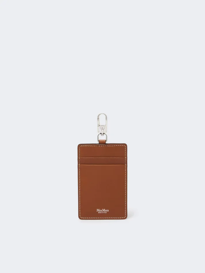 flat badge holder with small metal monogram clasp, ideal for attaching to the mlace strap and max mara bags.