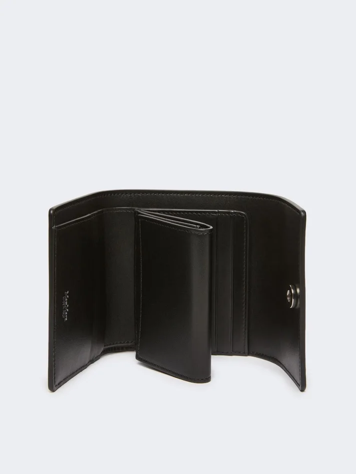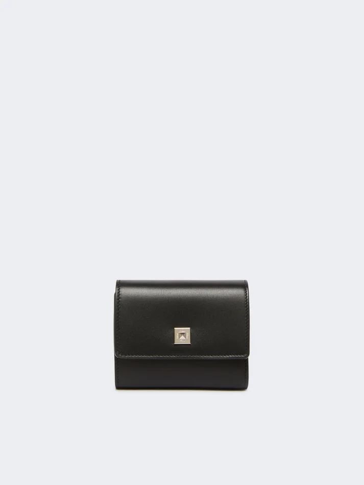 square-shaped tri-fold wallet customised with max mara lettering on the back and max mara-branded metal pyramid button fastening.