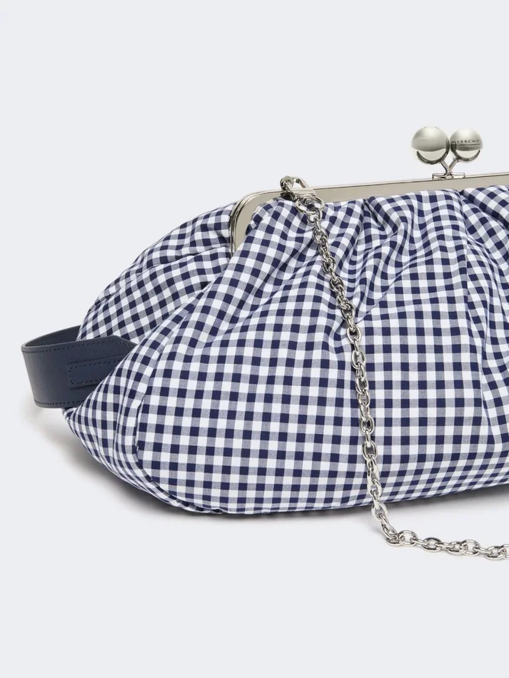 Large gingham cotton pasticcino bag, ultramarine