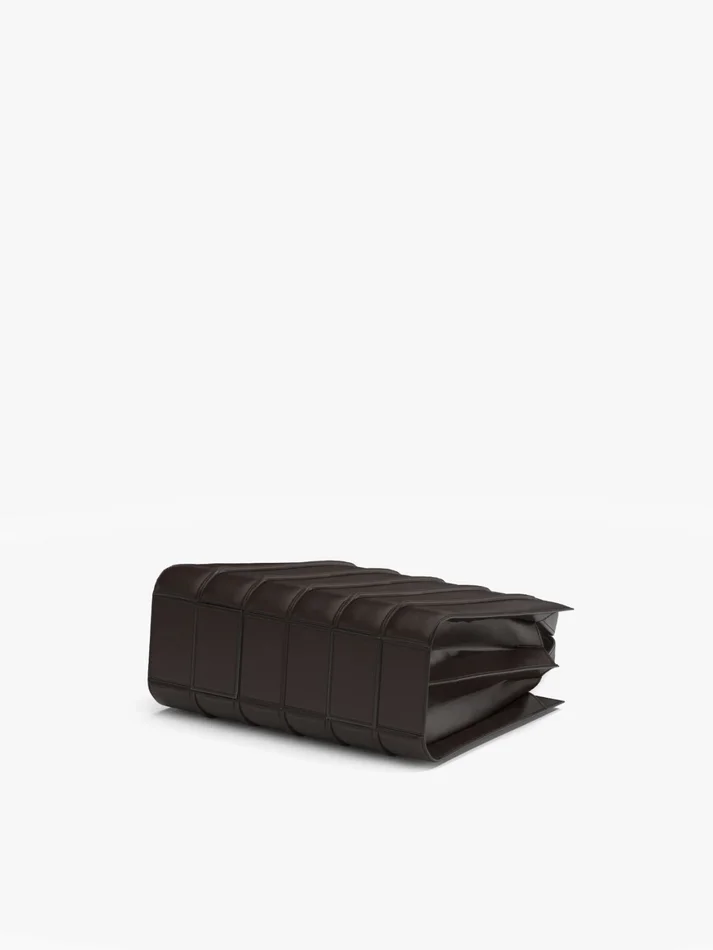 handbag in calf; lining in 60 nylon, 40 polyurethane.