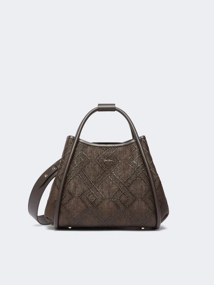 - raffia-effect fabric bag with 3d-effect diamond pattern