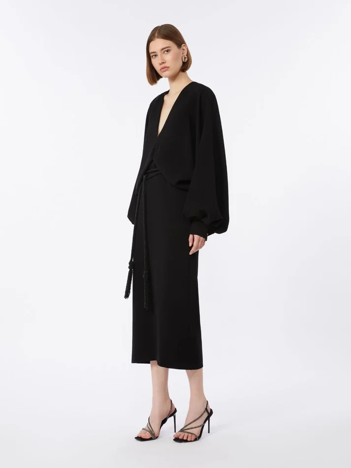 • loose kimono sleeves with cuff and jewel button- central rear slit
