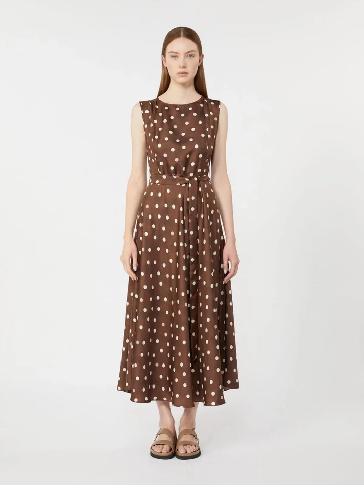 - dress in printed pure silk twill fabric