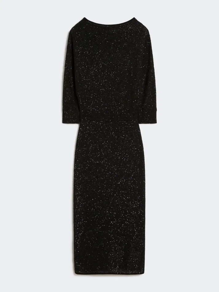 Sequinned viscose yarn dress, black