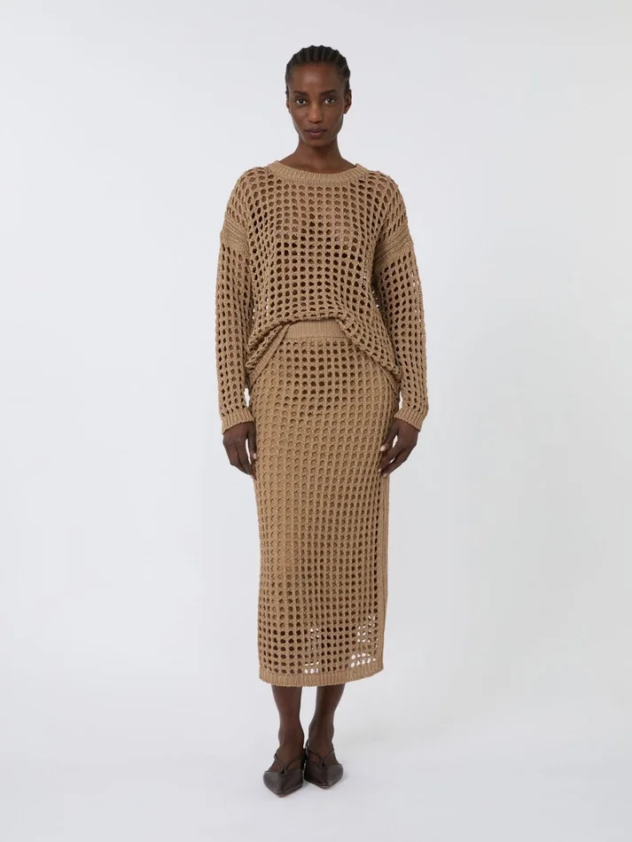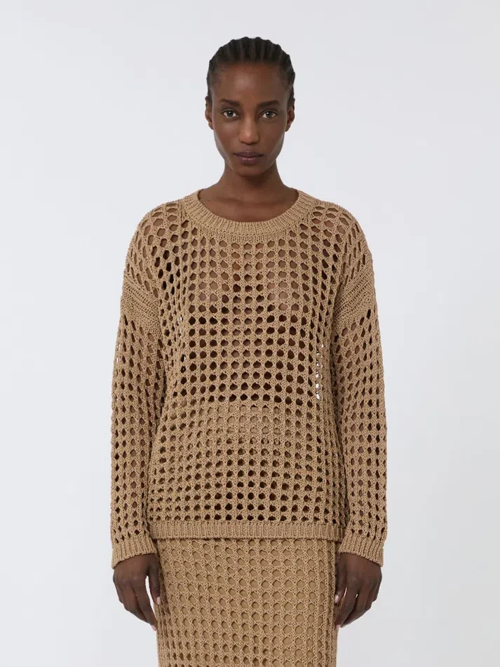 long-sleeved jumper, featuring a sheer-effect mesh knit.