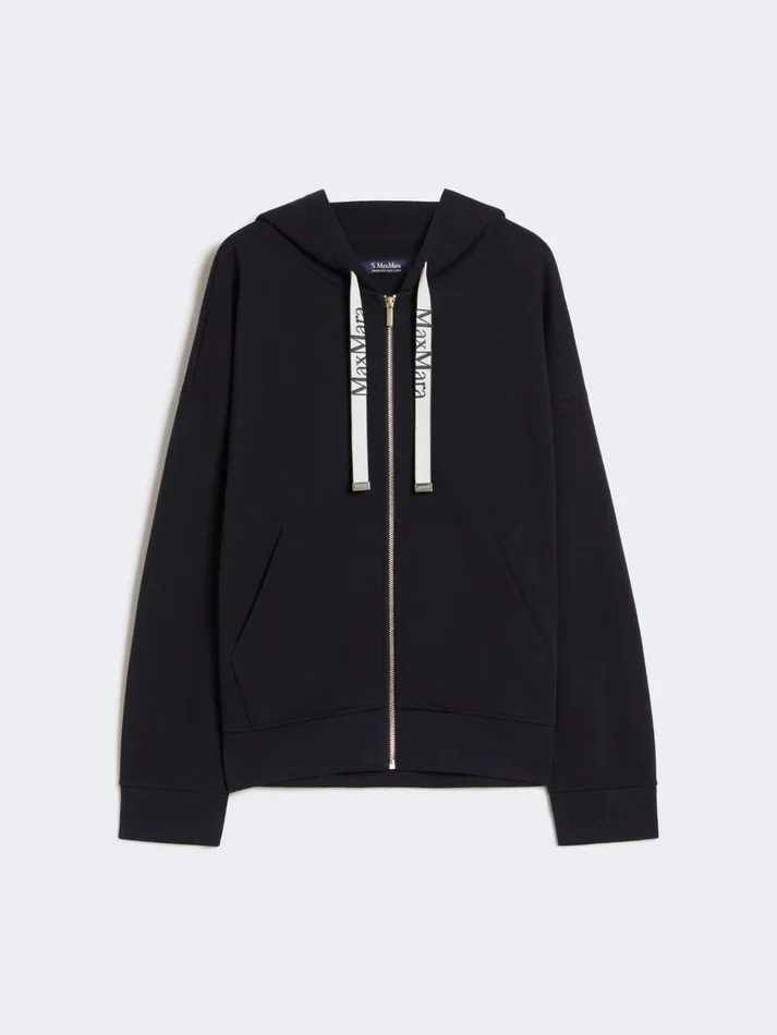 drawstring-hood sweatshirt with branded jacquard ribbons.