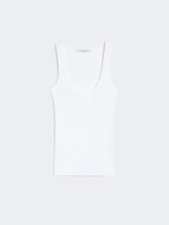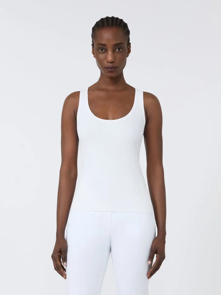 sleeveless top featuring a silhouette-accentuating rib-knit pattern.