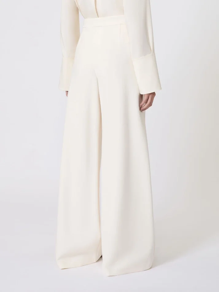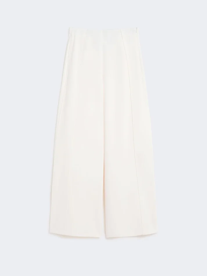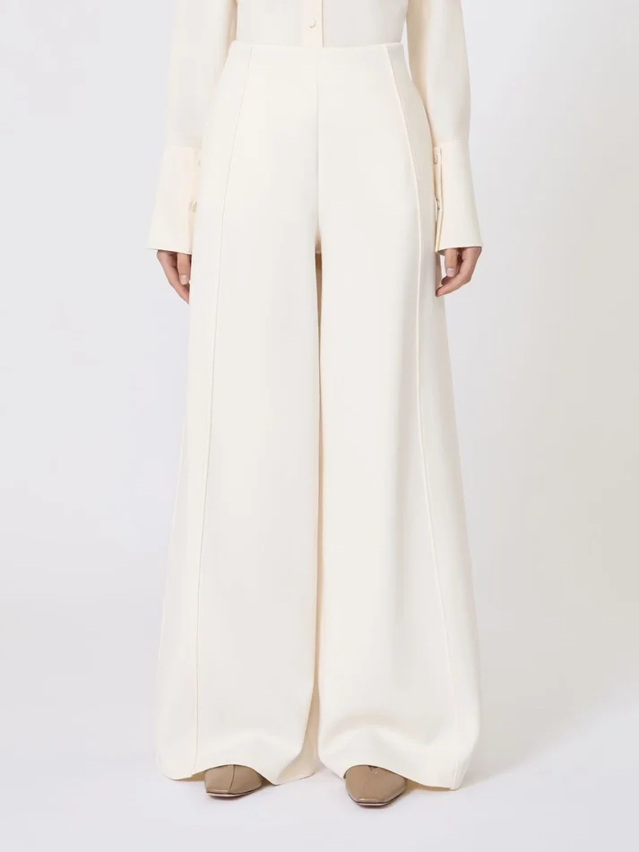 high-waisted trousers with side band motif and hand-sewn pick-stitch detail.