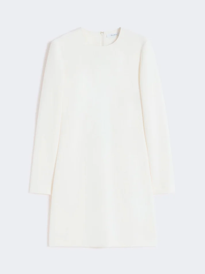 short dress with a fitted silhouette, defined by darts on the bodice and hand-sewn pick stitch.