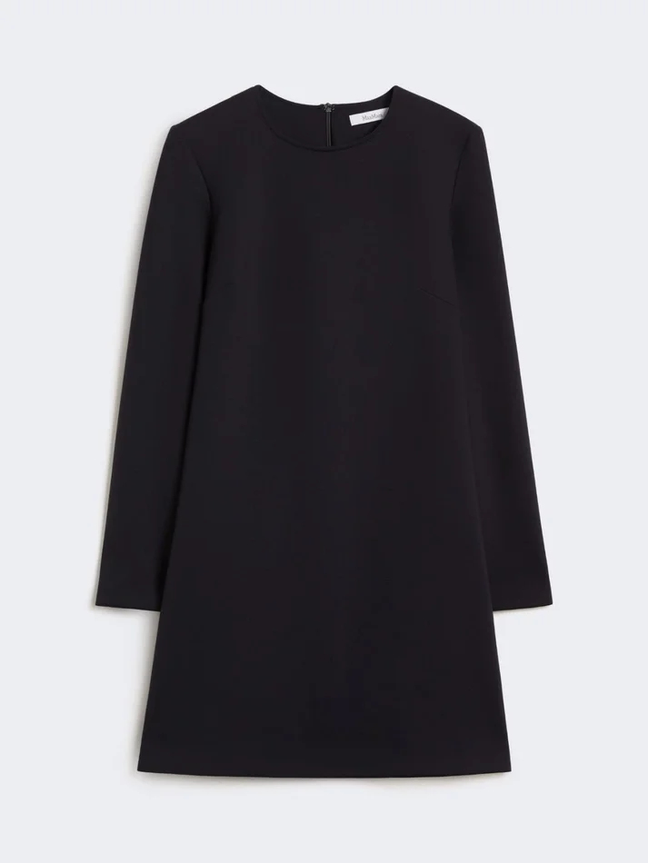 short dress with a fitted silhouette, defined by darts on the bodice and hand-sewn pick stitch.