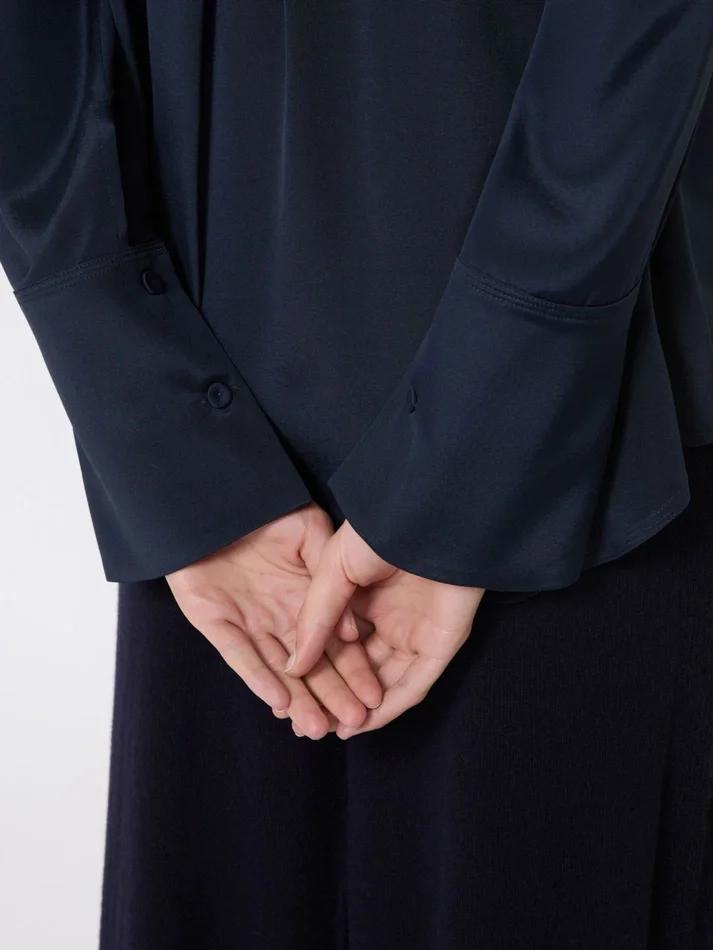 straight-cut shirt with a central reverse-pleat motif on the back that adds width and movement to the garment.