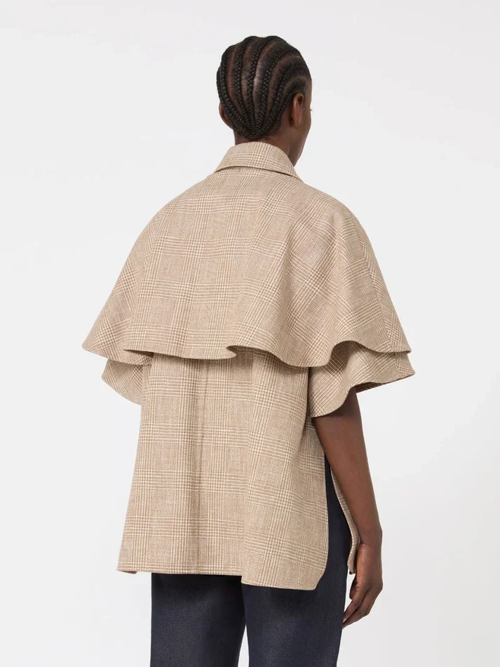- cloak in glen plaid-patterned pure moulina cotton fabric