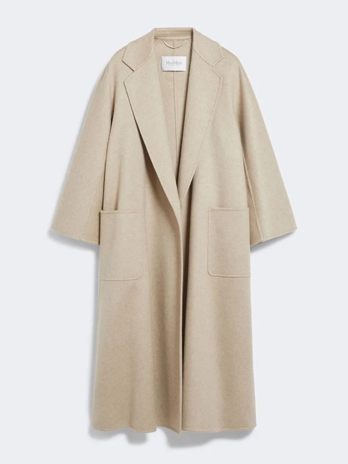 a classic from the max mara wardrobe, a symbol of a laid-back allure that does not sacrifice luxurious fabrics and impeccable attention to detail. reinterpreted in 2016 and reintroduced in all the collections since then, it is one of the iconic pieces of the max mara style. it stands out with its generous, enveloping silhouette that embraces the body, and can be customised thanks to the coordinated belt. the kimono sleeves and large patch pockets underline its understated, refined luxury.