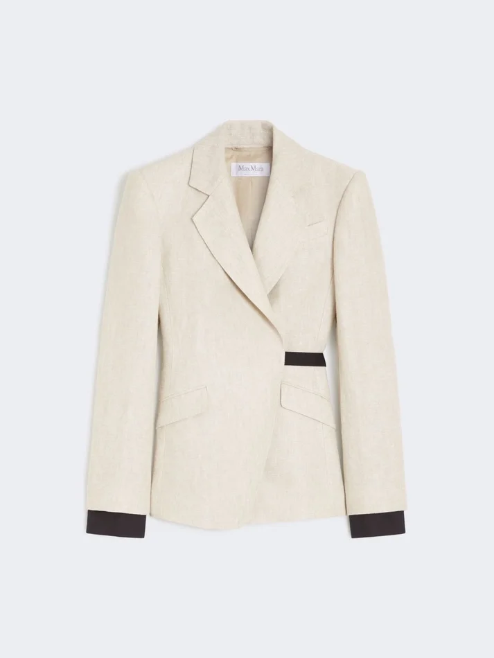 Be the first to review “Double-breasted blazer in linen drill, sand”