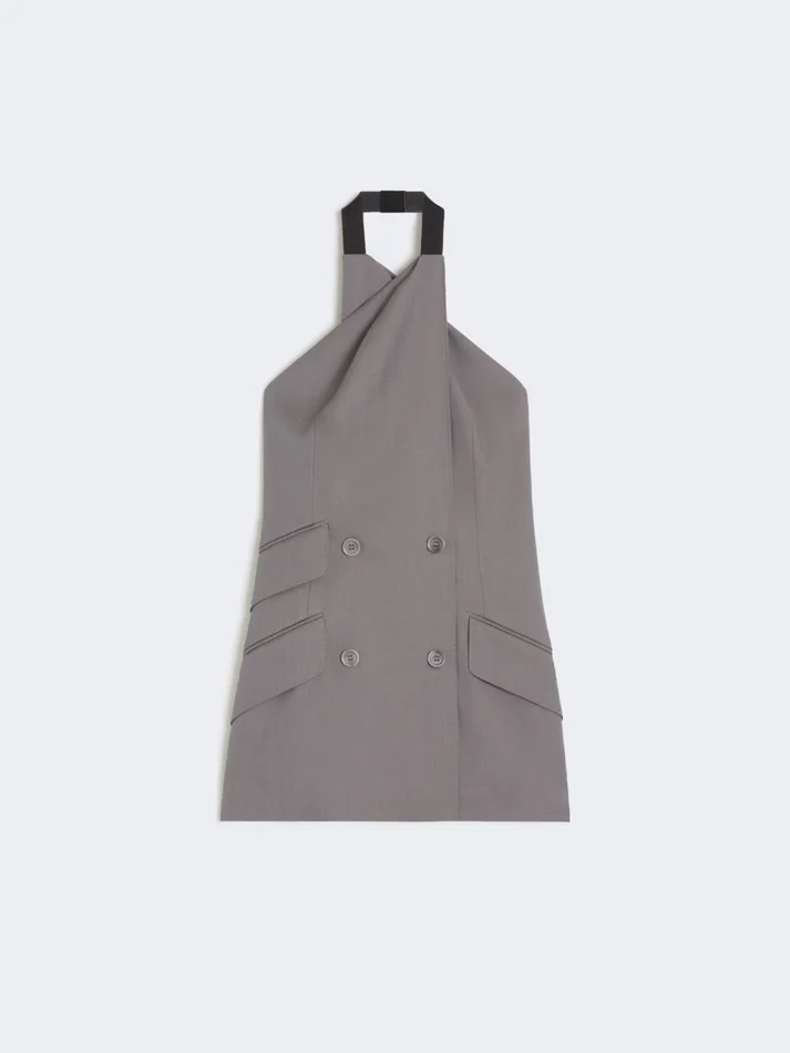 Gabardine wool sleeveless jacket, medium grey