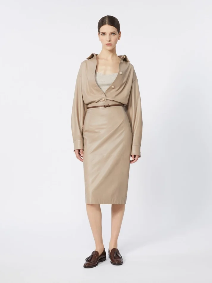 style in lamb leather; lining 95% acetate, 5% elastane.