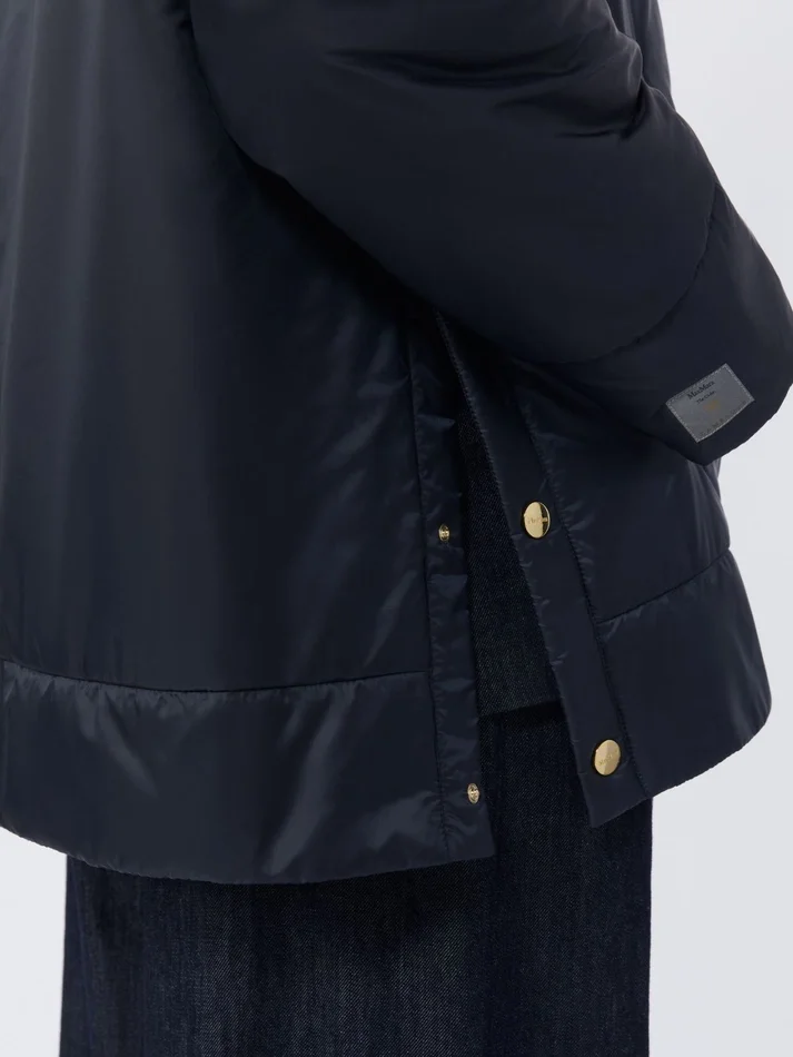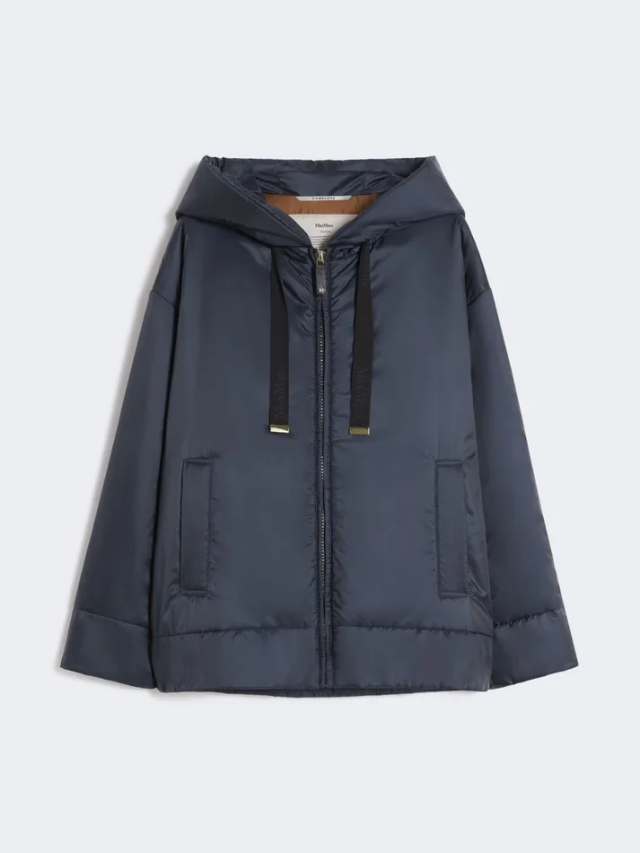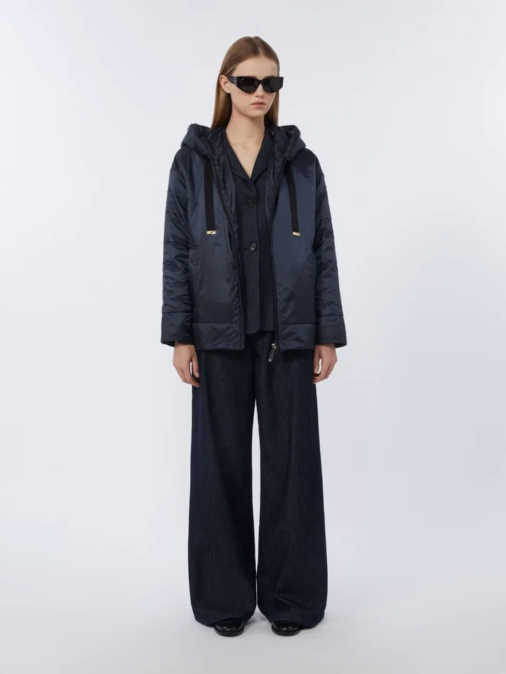 straight-fit padded jacket with drawstring hood and jacquard logo-branded ribbons