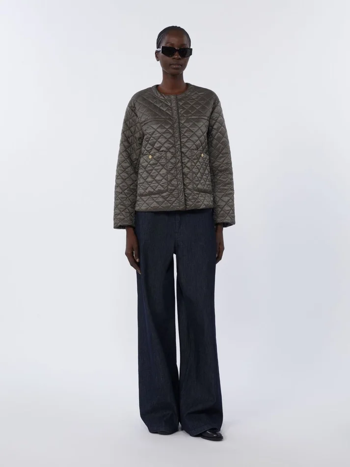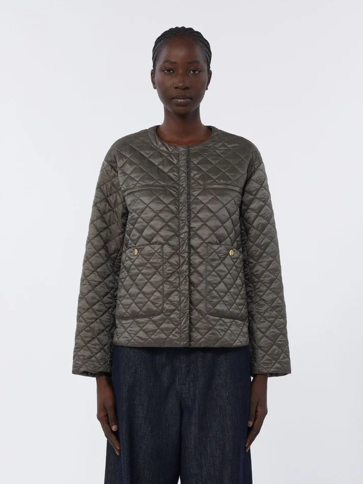 padded round-neck jacket with diamond-quilted pattern and totally smooth interior.