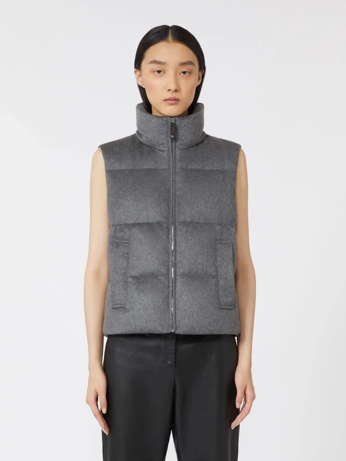 Water-repellent padded cashmere and canvas gilet, medium grey