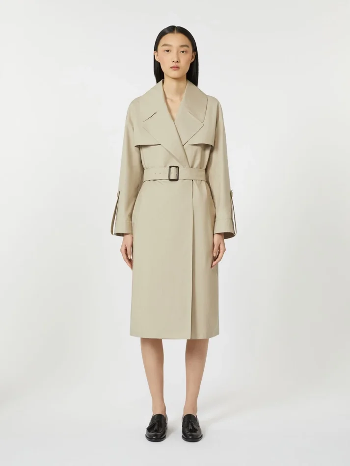 Be the first to review “Belted water-repellent twill trench coat, sand”