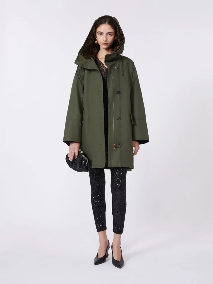- parka in water-repellent washed cotton canvas