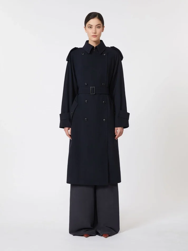 - trench coat in water-repellent pure wool gabardine fabric