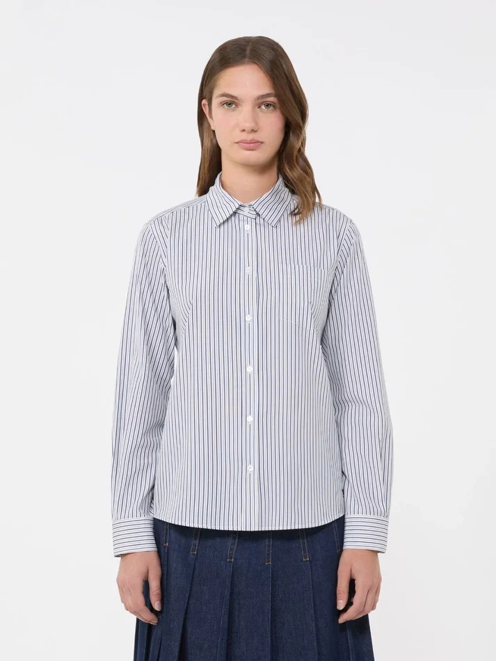 classic shirt featuring small embroidered butterfly logo detail on the front left-hand hem.