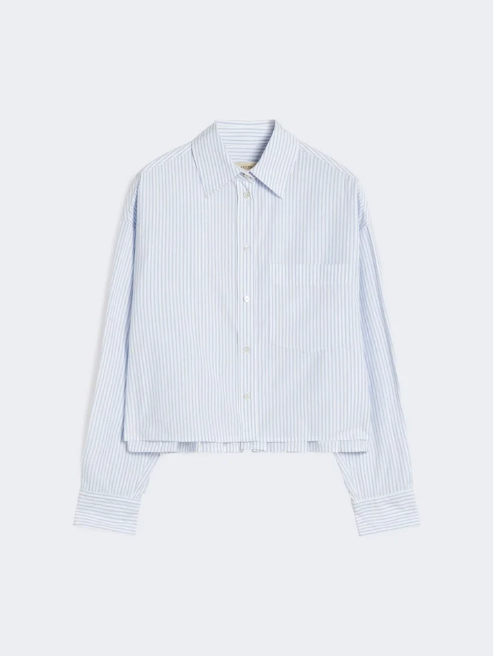 classic-inspired cropped shirt with pleat motif at the back and patch chest pocket on the left.
