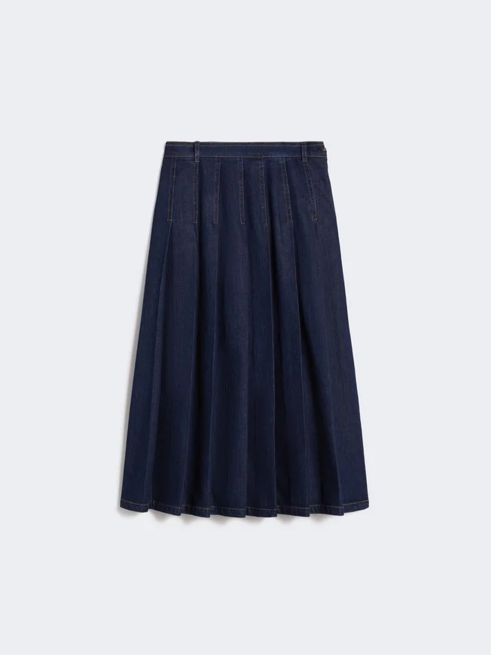 long skirt with semi-sewn ironed pleats and stitching motif on the sides.