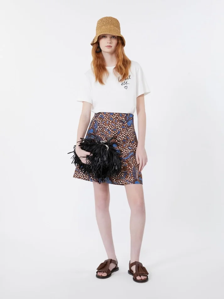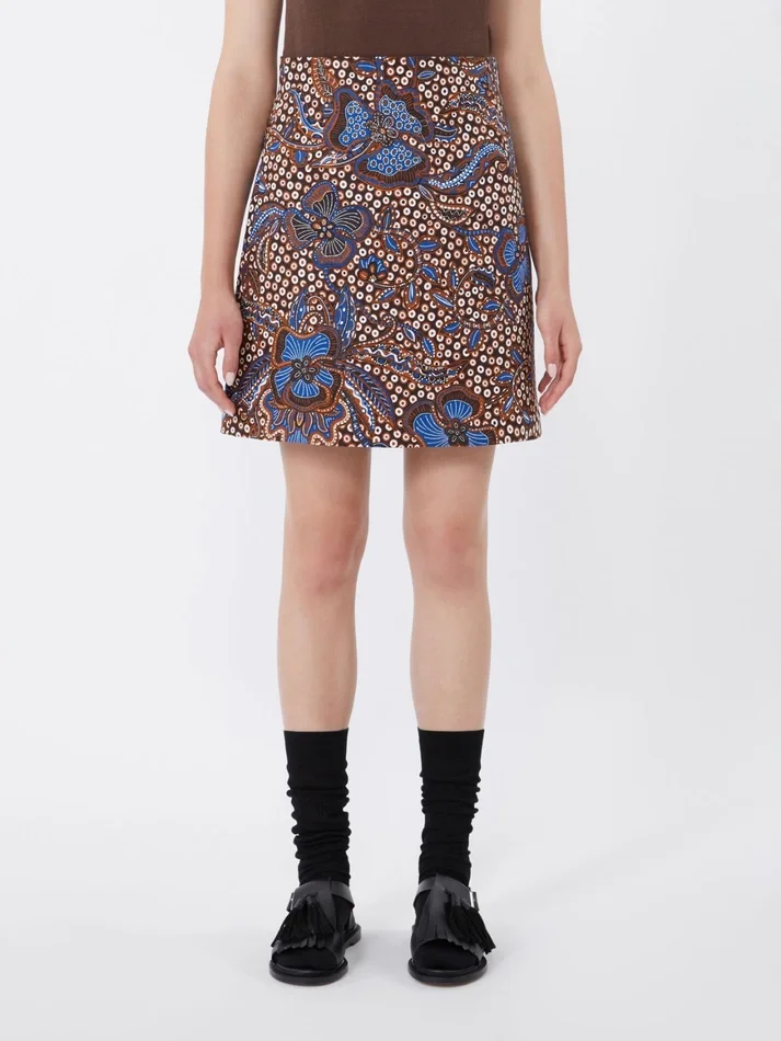 Be the first to review “Printed stretch cotton short skirt, tobacco”