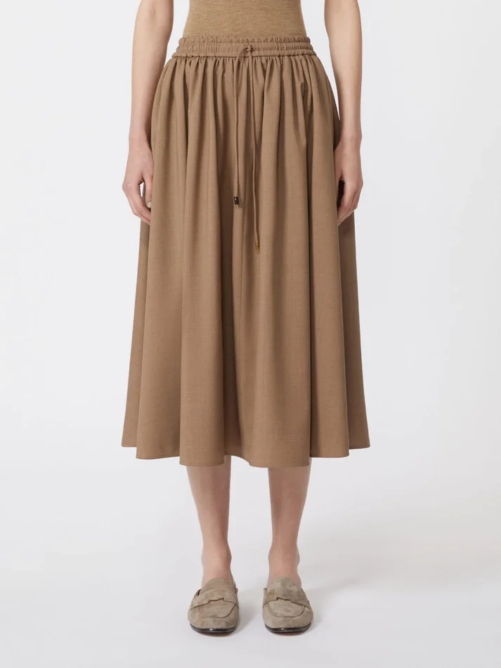 midi skirt with a drawstring-adjustable elasticated waist.