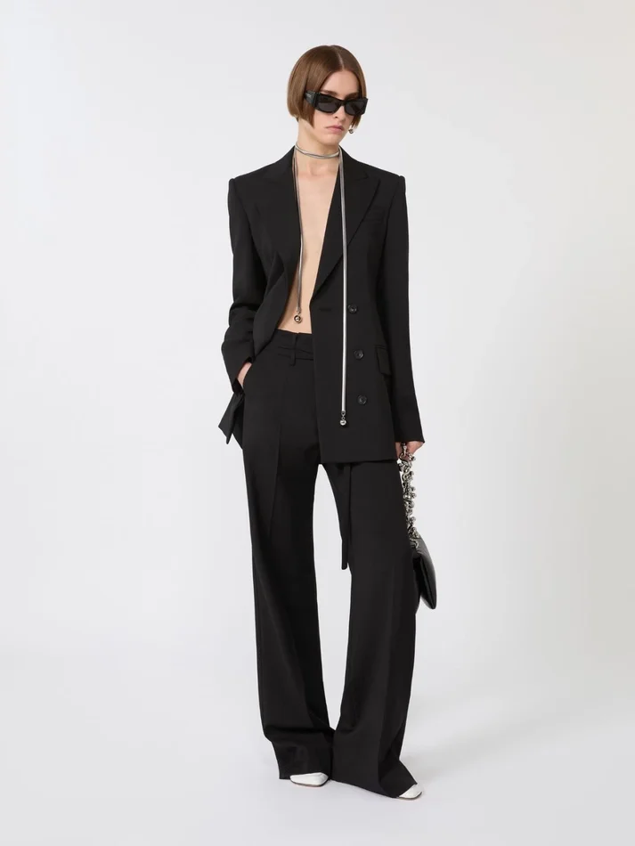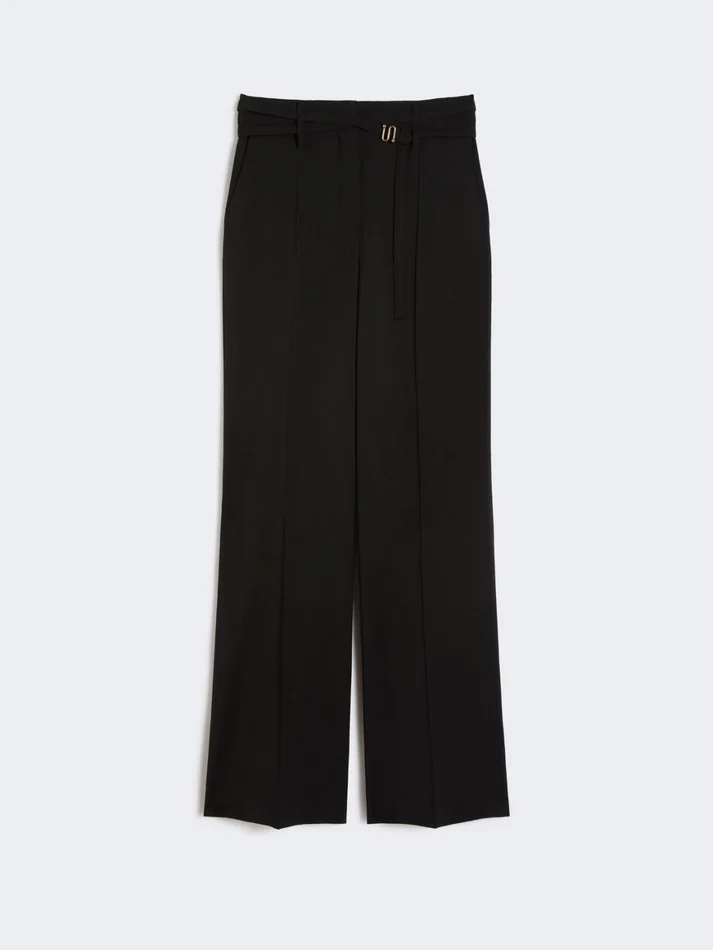 Flared stretch woollen cloth trousers, black