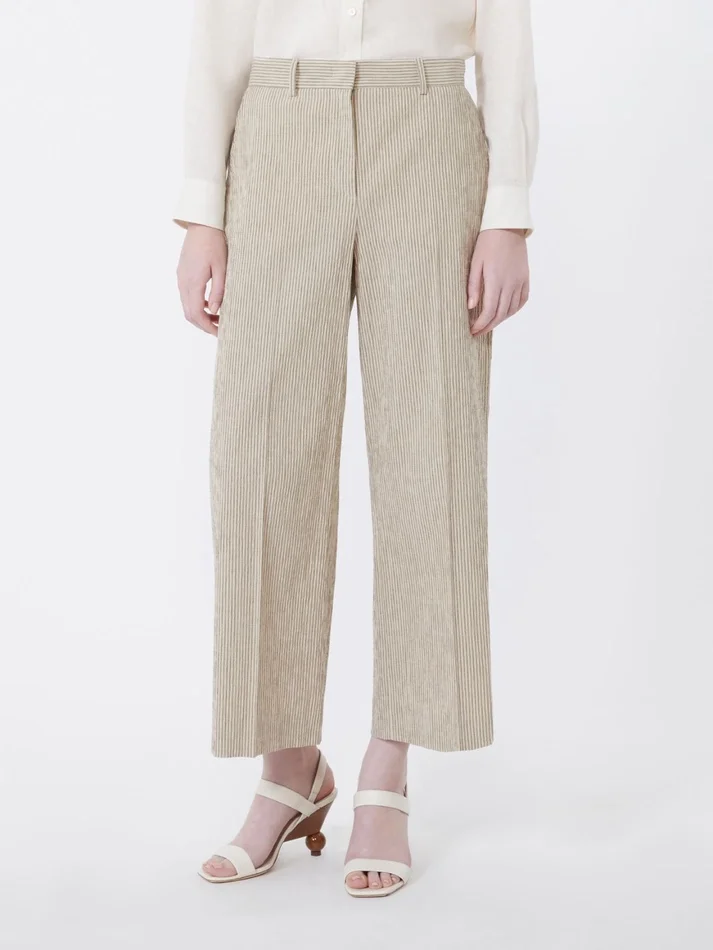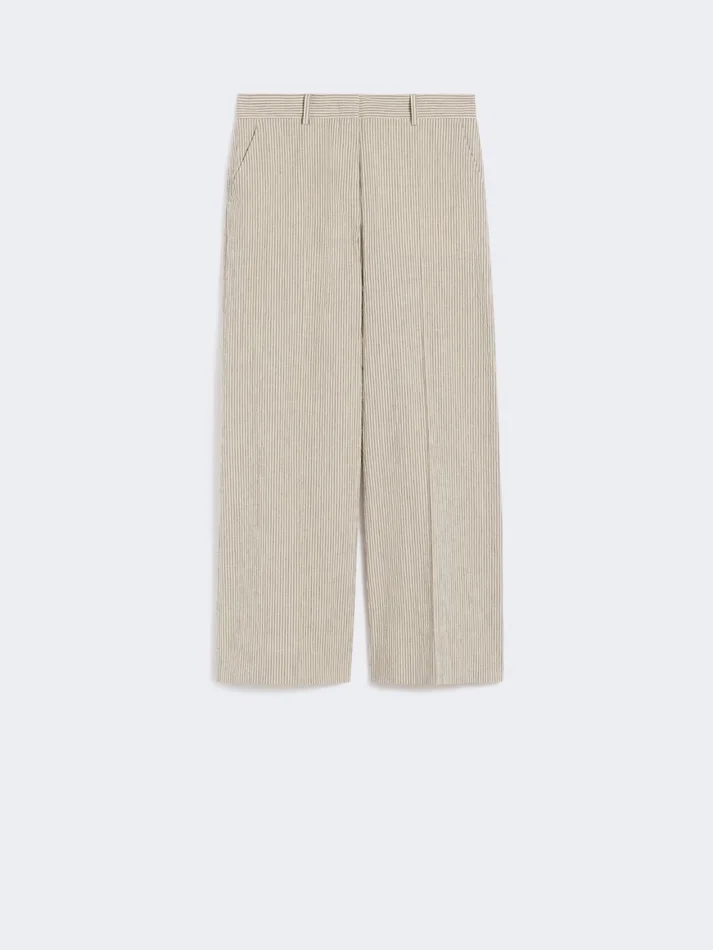 - striped linen and cotton seersucker trousers