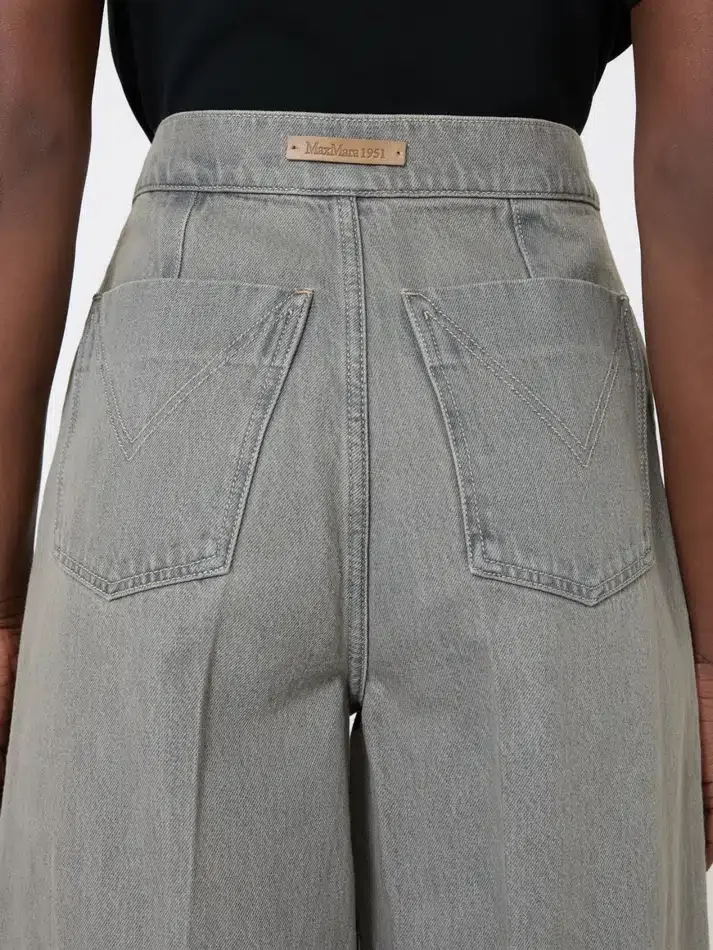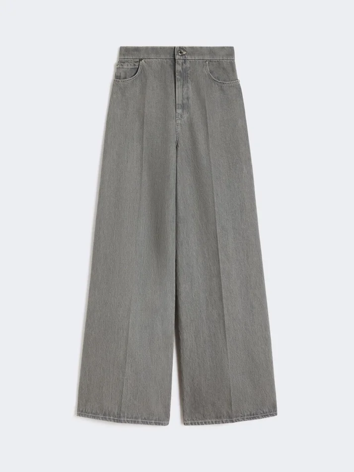 menswear-style wide-leg trousers, treated with garment wash and denim-style details.