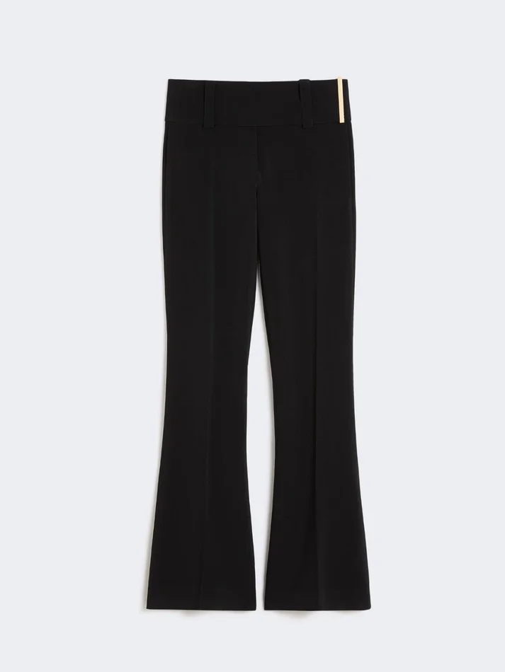 flared low-rise trousers with a slim fit at the thighs. the low-rise model is embellished with a side-fastening statement belt, complete with metal detail.