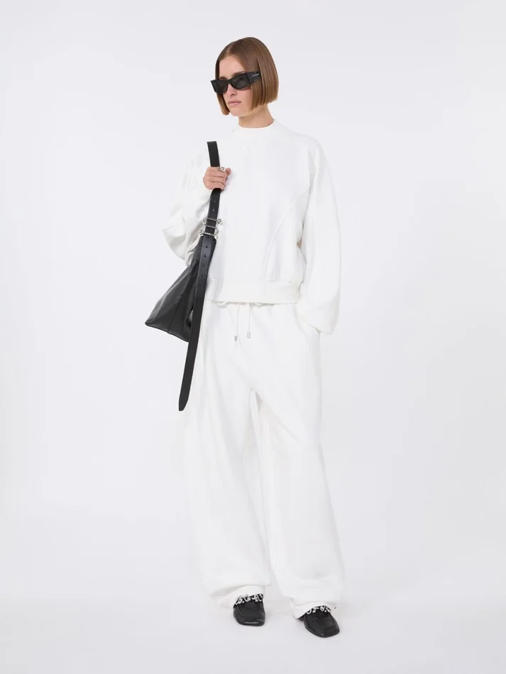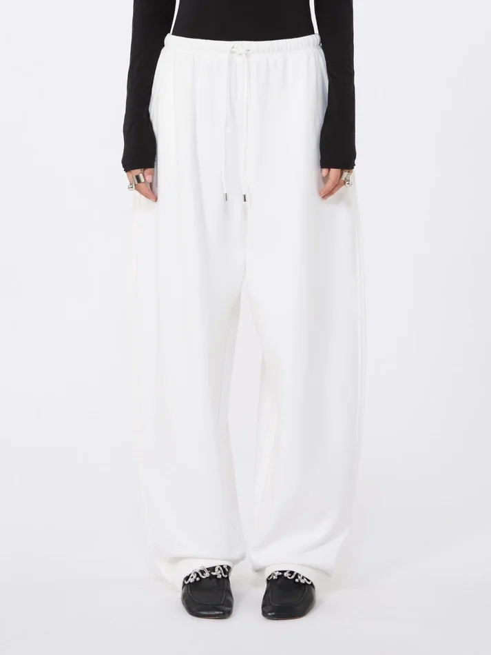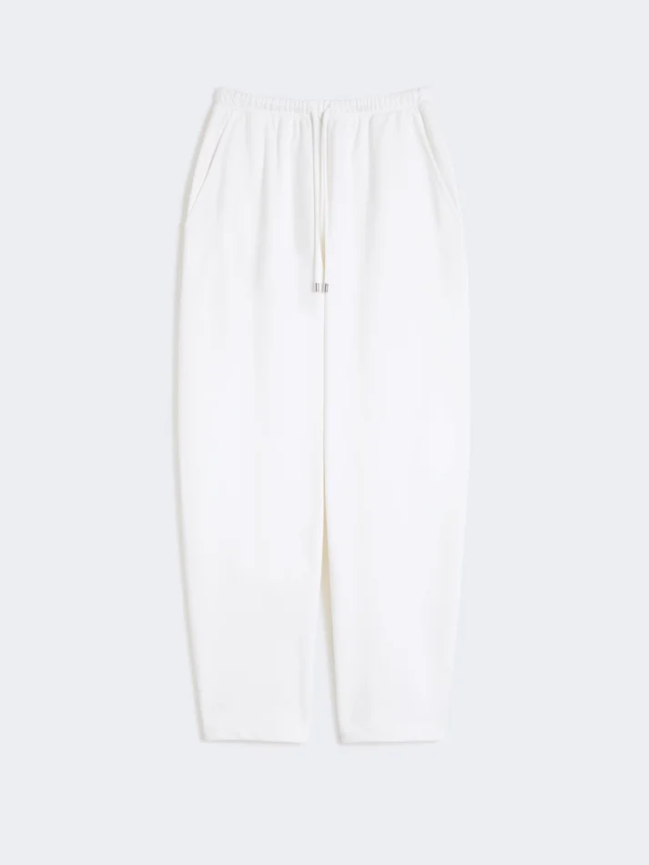 sweatpants with a soft, relaxed volume, perfect for moments of leisure or casual outings. featuring a drawstring waist and a tone-on-tone rubberized logo.