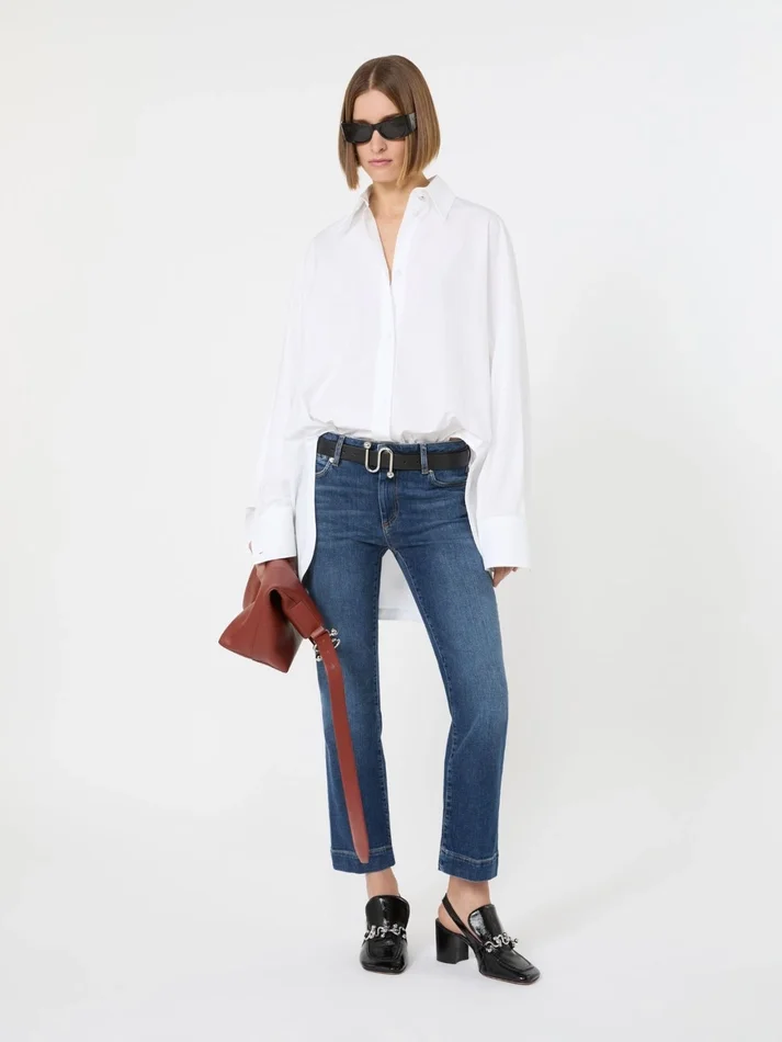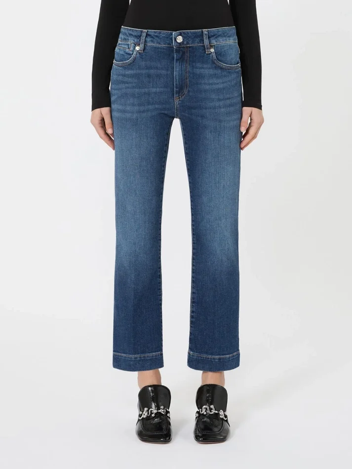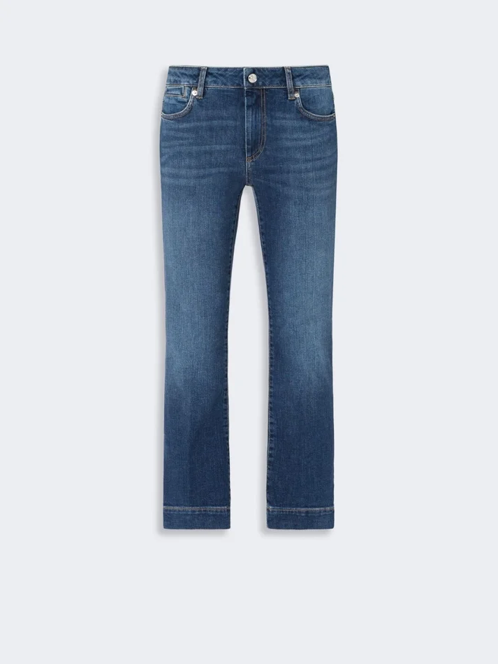 the perfect jeans, every time: low waist, flared hems and the perfect construction to show off your figure. cropped at the ankle for an even more streamlined effect.