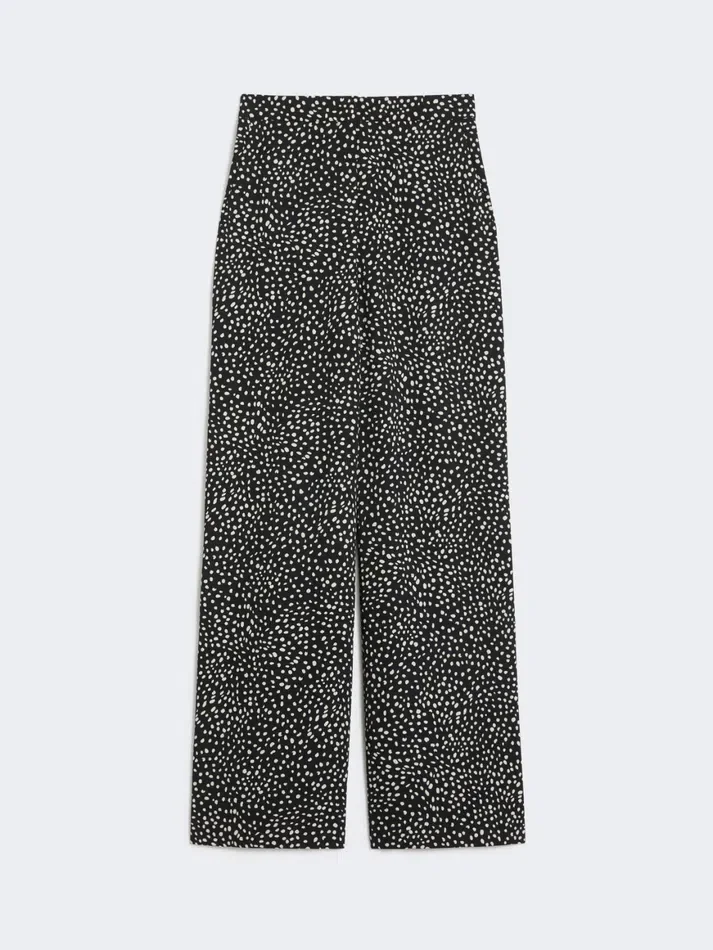 wide-leg trousers with a medium-high waist and an all-over printed collection motif.
