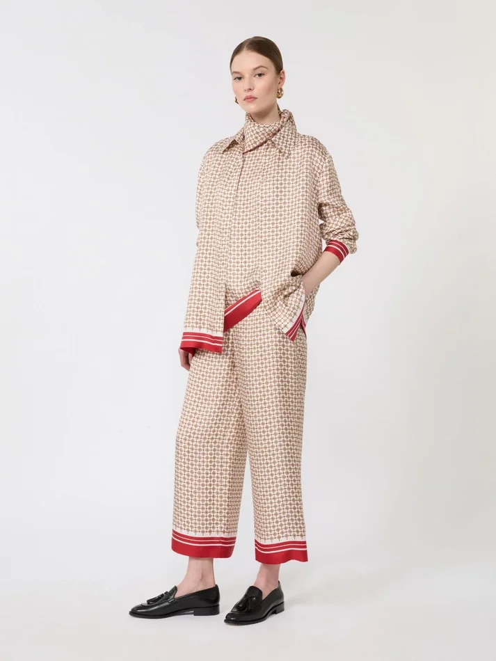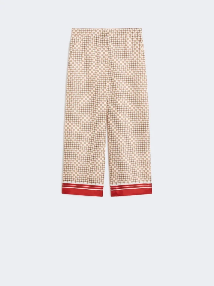 wide-fit trousers featuring a cropped ankle cut and all-over scarf print detail.