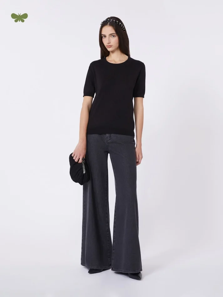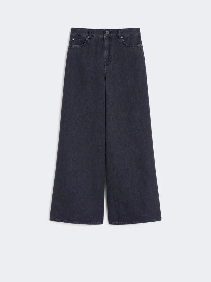 five-pocket jeans with a wide-leg silhouette, customised with a butterfly logo label on the right back pocket.