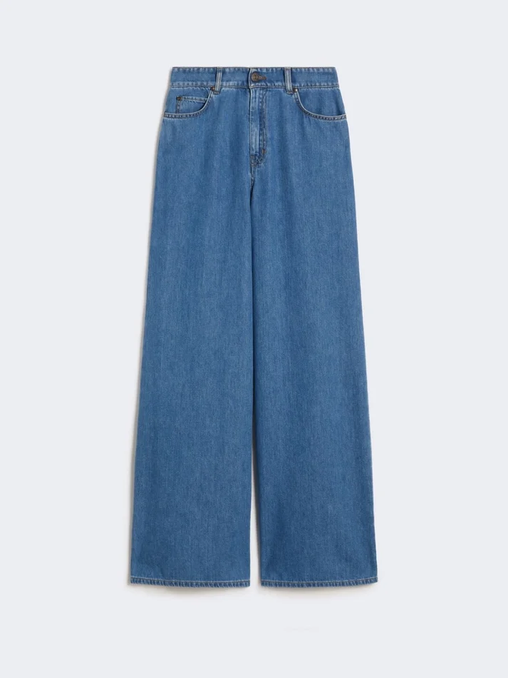 five-pocket jeans with a wide-leg silhouette, customised with a butterfly logo label on the right back pocket.
