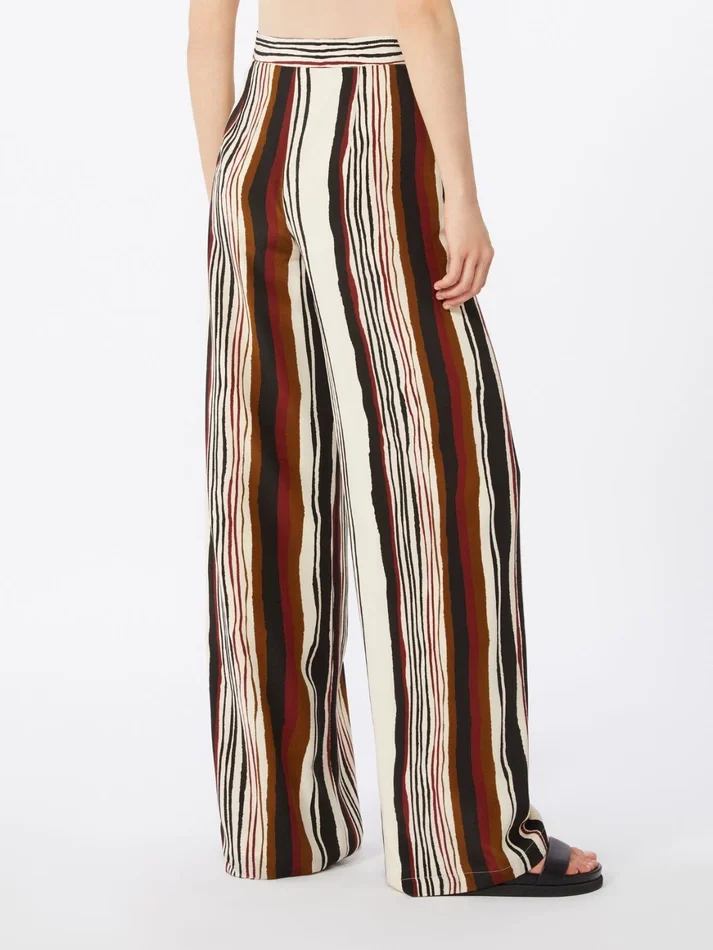 Striped crepe de chine trousers, brick red