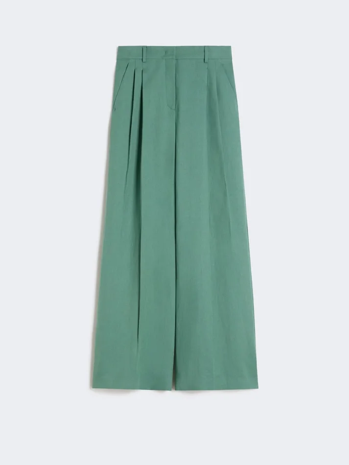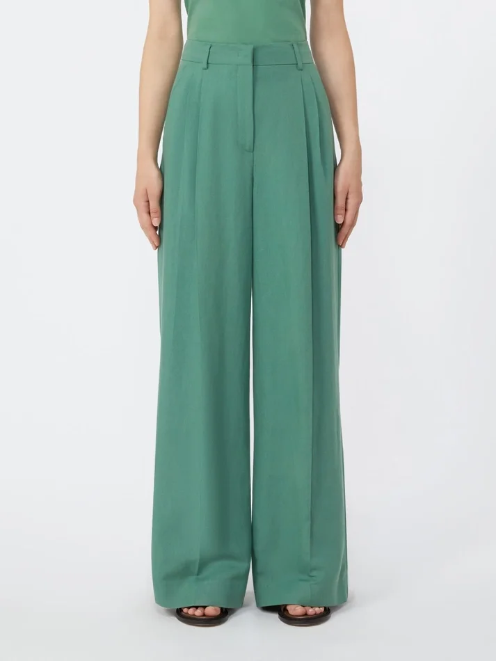 Viscose and linen wide-leg trousers, green